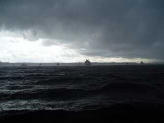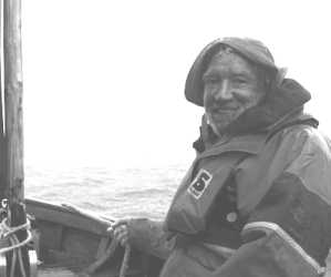 während ich das Dinghy langsam durch die kurzen, steilen Wellen steuere.