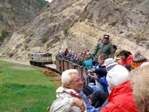 Wir haben eine spektakuläre Bahnfahrt durch die Anden gemacht, bei der wir in über dreitausend Metern Höhe, warm eingepackt, auf dem Dach des Zuges die Aussicht genossen. Die kleine Bahn klettert im Zickzack - also immer mal vorwärts, mal rückwärts fahrend - an den steilen Flanken der Schluchten empor. Wir sind am Basislager des höchsten, aktiven Vulkans der Erde, dem Cotopaxi, auf 4600m Höhe gewesen, hatten aber leider nur wenige berauschende Ausblicke, da sich Schneeschauer und Nebel ablösten.