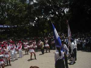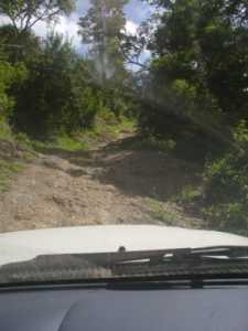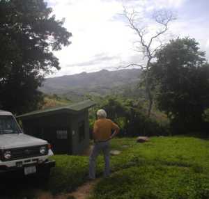 Das Treffen mit den Ärzten brachte eine überraschende Wende in unsere Strategie: sie boten uns an, dass wir in einigen - sehr abseits gelegenen - Centros de Salut (Gesundheitszentren), die wegen Ärztemangel und wegen Geldmangel für Benzin und Medikamente geschlossen seien, arbeiten könnten. Wir sollten Arzt, Auto und Medikamente stellen, dann würden sie Räumlichkeiten, Krankenschwestern, Helfer und die Dokumentation übernehmen. Nach kurzer Diskussion einigten wir uns auf fünf Kreise in denen wir in jeweils einem abgelegenem Ort einmal pro Woche Sprechstunde halten wollten. Dieses Angebot war so gut, dass wir schnell ja sagten. Nach vielen Küsschen auf die Wange, bzw. Schulterklopfen, verließen wir das Gesundheitsamt. Pater Franzisco bot uns nun an, uns auf einer Tour durch einen Landkreis zu begleiten und zwar zu dem entferntesten Ort, der etwa 2 ½ Autostunden entfernt liegt. Die Idee fand Anklang, doch musste der Padre vorher noch zu einer Festlichkeit anlässlich des 26. Jahrestages des Militärs. Es lag an unserem Weg und so lud er uns ein, ihn dorthin zu begleiten. Kaum dort angekommen wurden wir zu Grillfleisch und Cola eingeladen und natürlich wurden wir sofort in die Liste der Schützen aufgenommen, die an einem Wettschiessen teilnahmen. Geschossen wurde mit russischen AKN Karabienern. 10 Schuss liegend auf 100 m . Der Colonel gab uns persönlich die Einweisung in den Gebrauch der Waffe und dann schossen wir in einer 10er Gruppe. Katrin und ich brachten jeweils einen Treffer in die äußere Ecke der Scheibe; Peter war der Held des Tages, denn obwohl er noch nie geschossen hatte, landete er 8 Treffer mit 76 Punkten. Dann brachen wir auf in eine wunderschöne Landschaft. Wir fuhren noch einen kleinen Umweg und so konnten wir grandiose Ausblicke über Wald- und Feldlandschaft genießen bis hinüber zur honduranischen Grenze. Nach gut der Hälfte der Strecke änderte sich die Vegetation dramatisch.