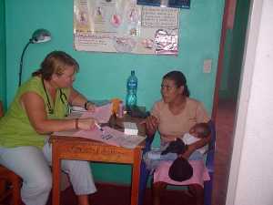 Gesundheitszentrums, die die Kinder wog, Verhütungsmittel verteilte,